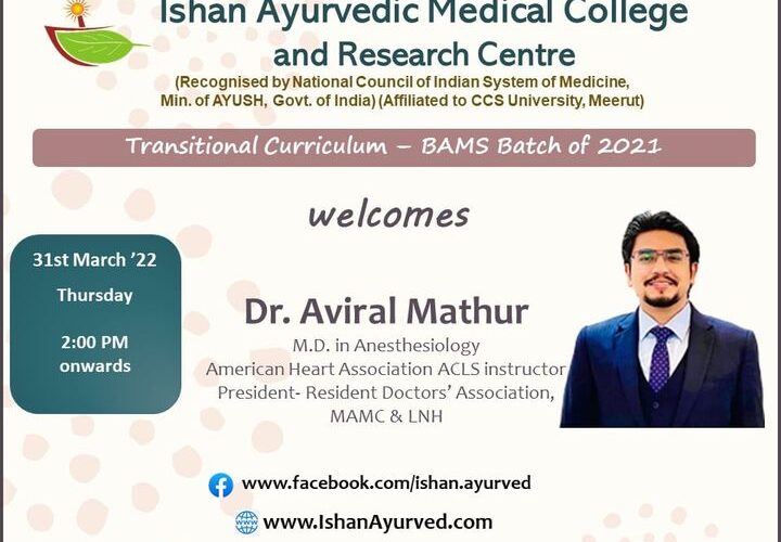 Dr. Aviral Mathur, M.D. (Anesthesiology), American Heart Association ACLS instructor, President- Resident Doctors’ Association, MAMC & LNH addressing the students of BAMS in Transitional Curriculum for BAMS Batch of 2021.Read More