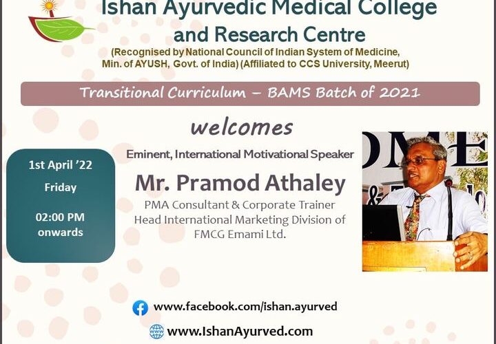 Mr. Pramod Athaley, PMA Consultant & Corporate Trainer, Head International Marketing Division of FMCG Emami Ltd. addressing the students of BAMS in Transitional Curriculum for BAMS Batch of 2021 at Ishan.Read More