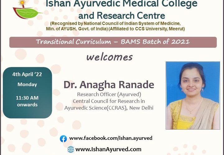 Dr. Anagha Ranade, Research Officer (Ayurved), Central Council for Research in Ayurvedic Science (CCRAS), New Delhi addressing the students of BAMS in Transitional Curriculum for BAMS Batch of 2021 at Ishan.Read More