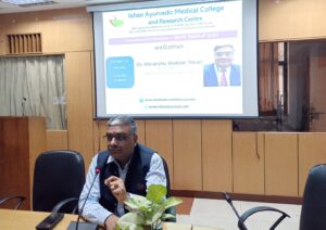 Dr. Himanshu Shekhar Tiwari, Medical Advisor, Multani Pharmaceutical addressing the students of BAMS in Transitional Curriculum for BAMS Batch of 2021.
