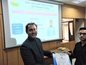 Dr. Keshav Chauhan, Eminent Doctor and Head, Ayunique Team, JIVA Ayurveda addressing the students of BAMS