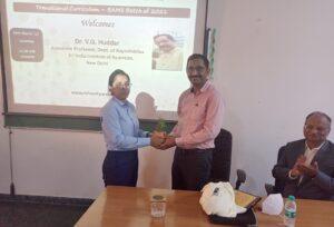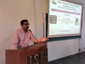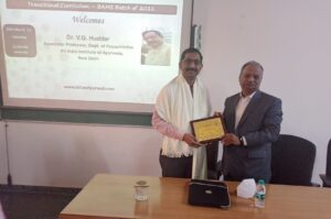Dr. V G Huddar, AIIA, New Delhi addressing the students of BAMS in Transitional Curriculum for BAMS batch of 2021.